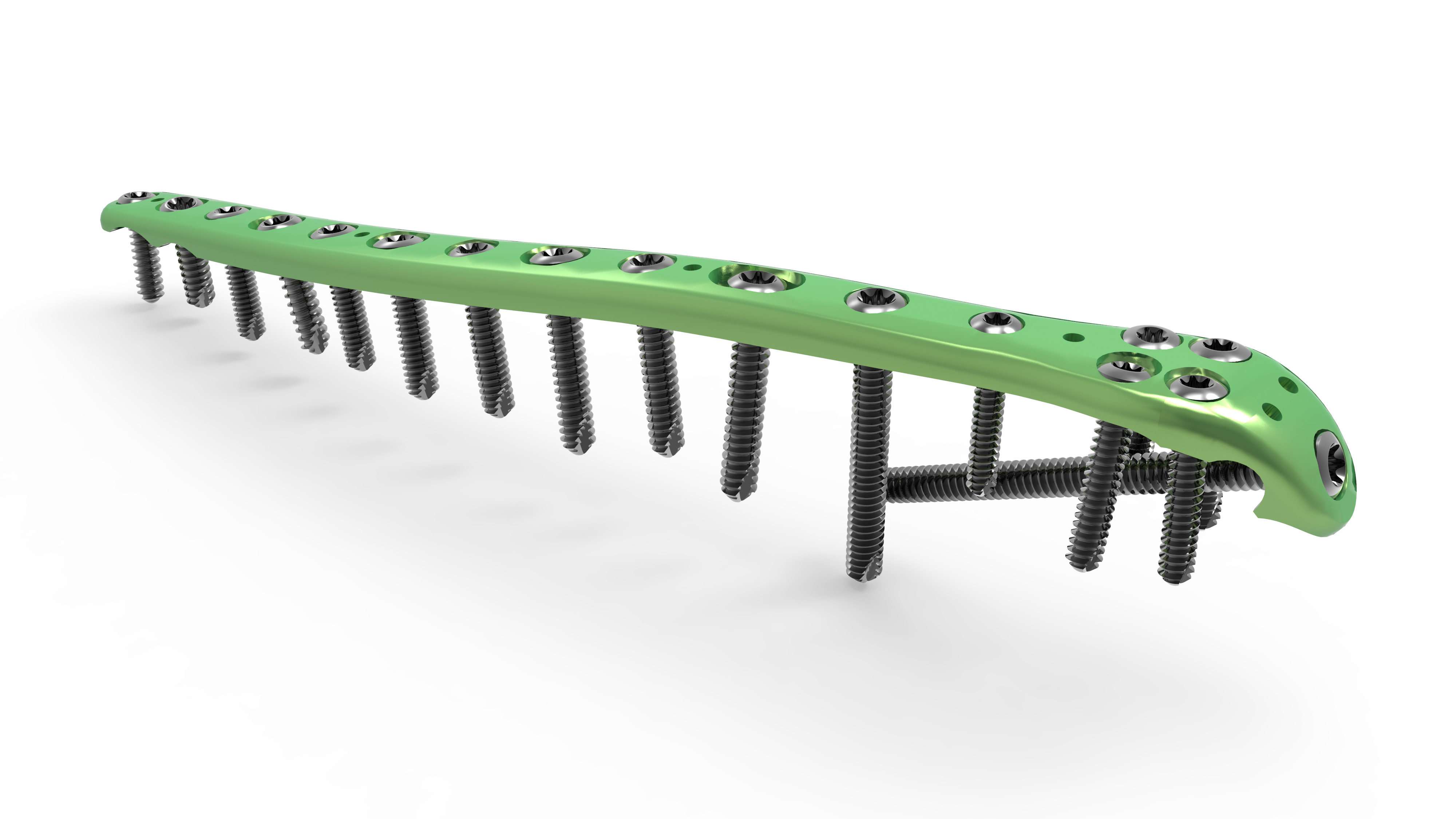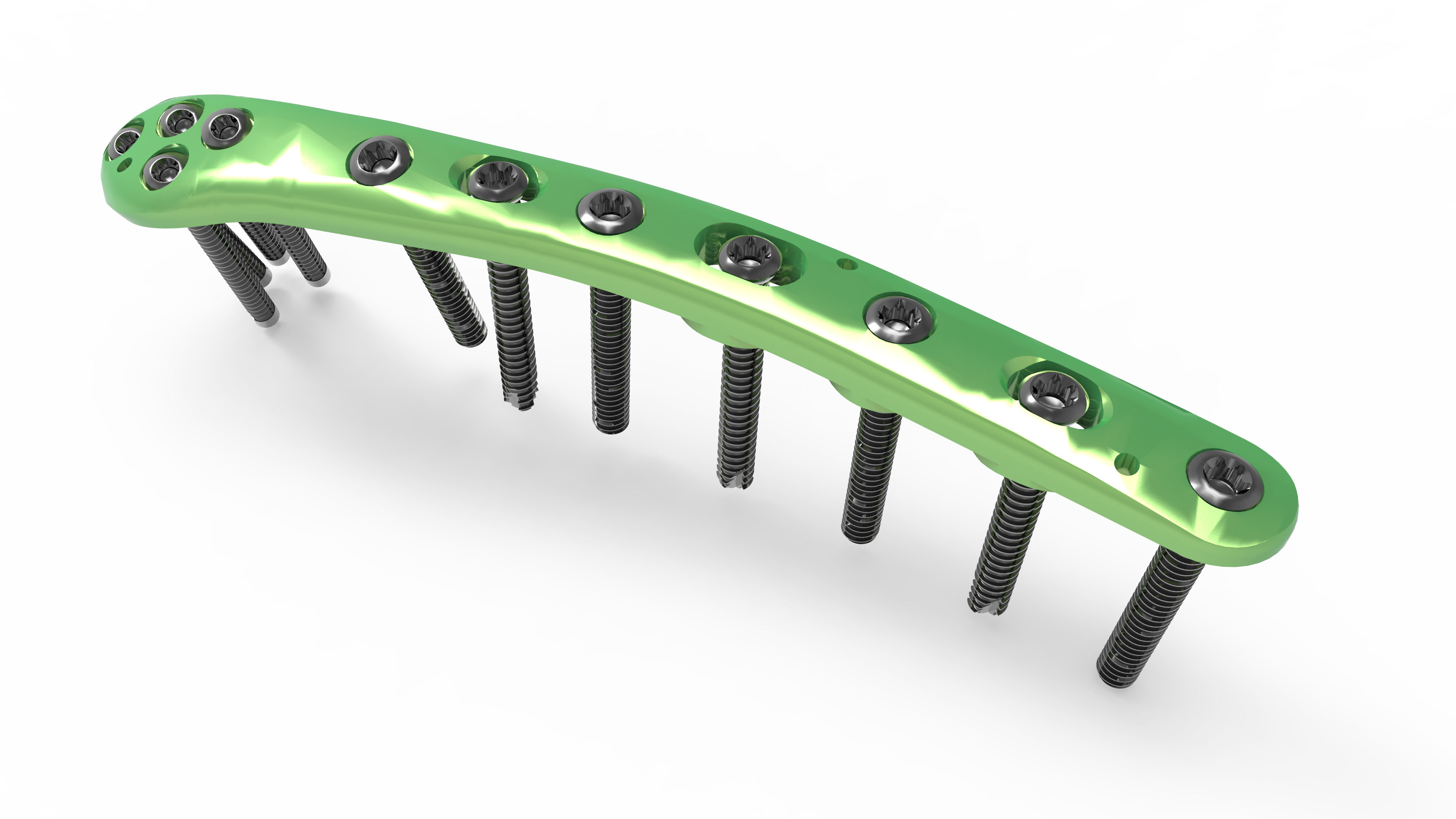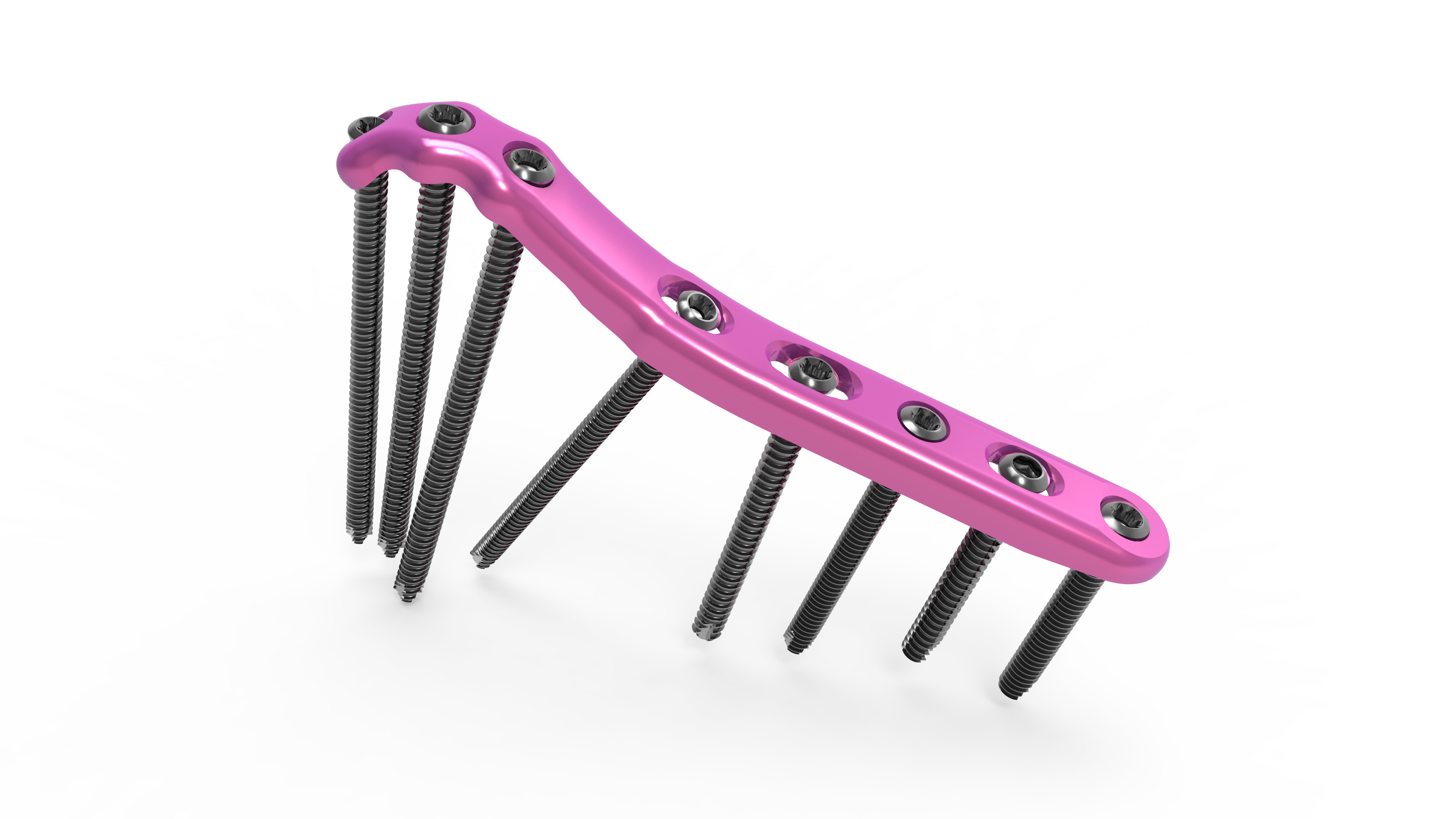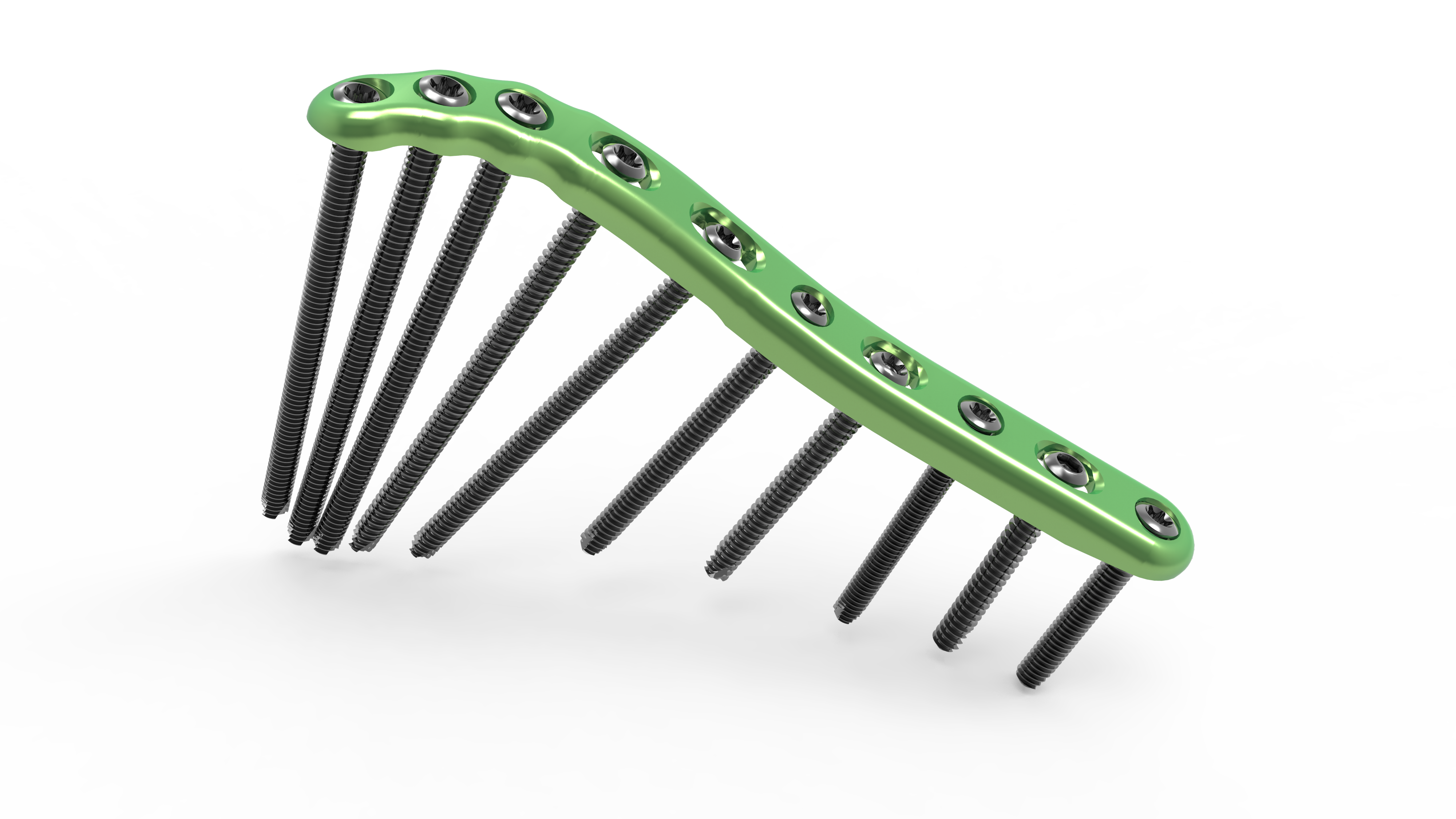 The screw trajectory is designed to allow screws to capture fracture fragments and avoid other screws regardless of the screw length selected.