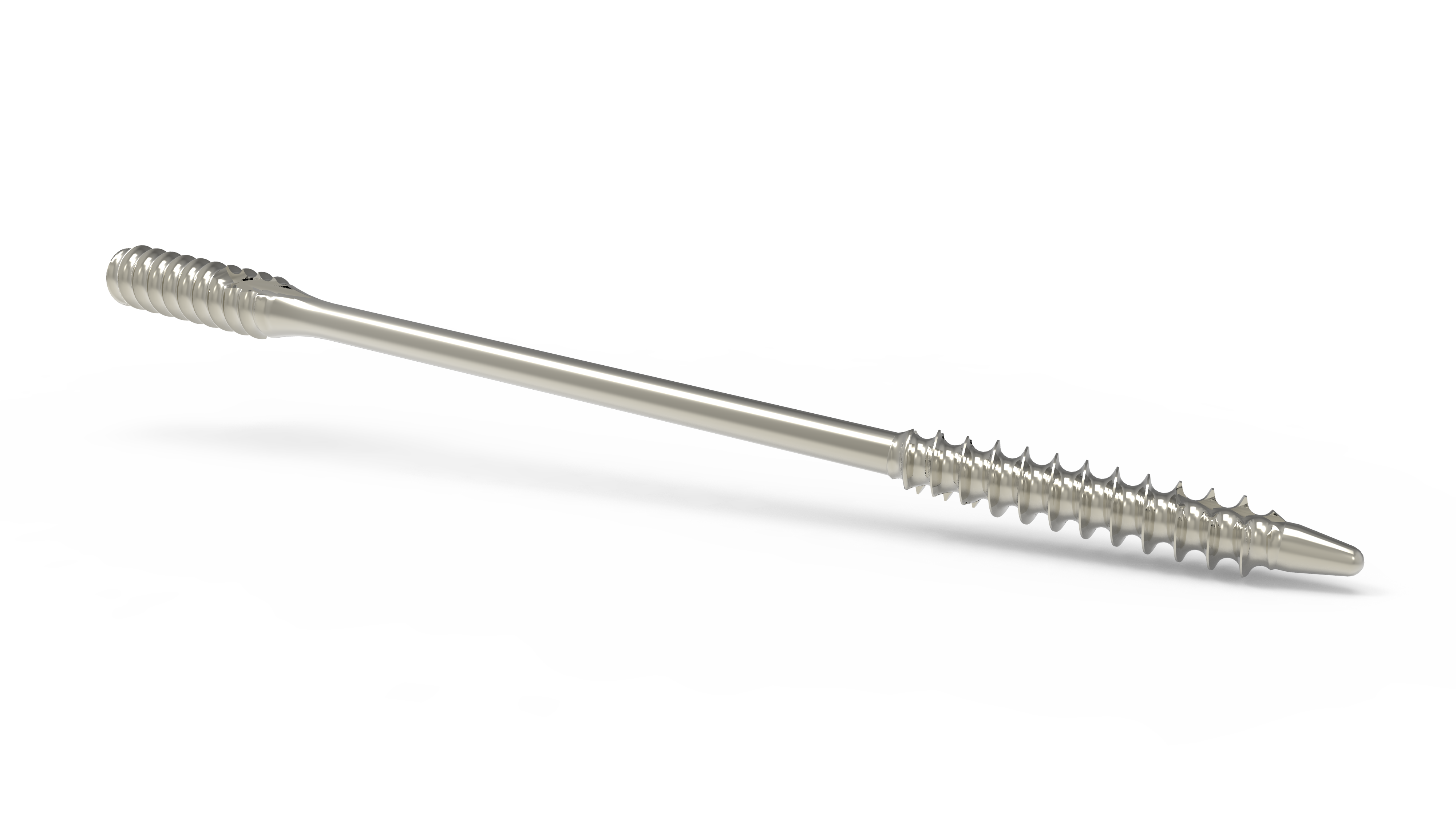 Interfragmental compression is achieved by the differential pitch on the screw’s tip and tail ends.